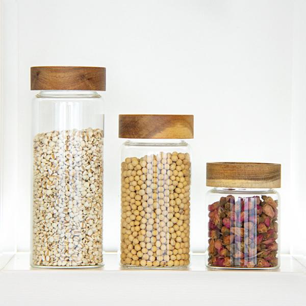 | Usage | Borosilicate glass storage jar with screw acacia wooden lids |